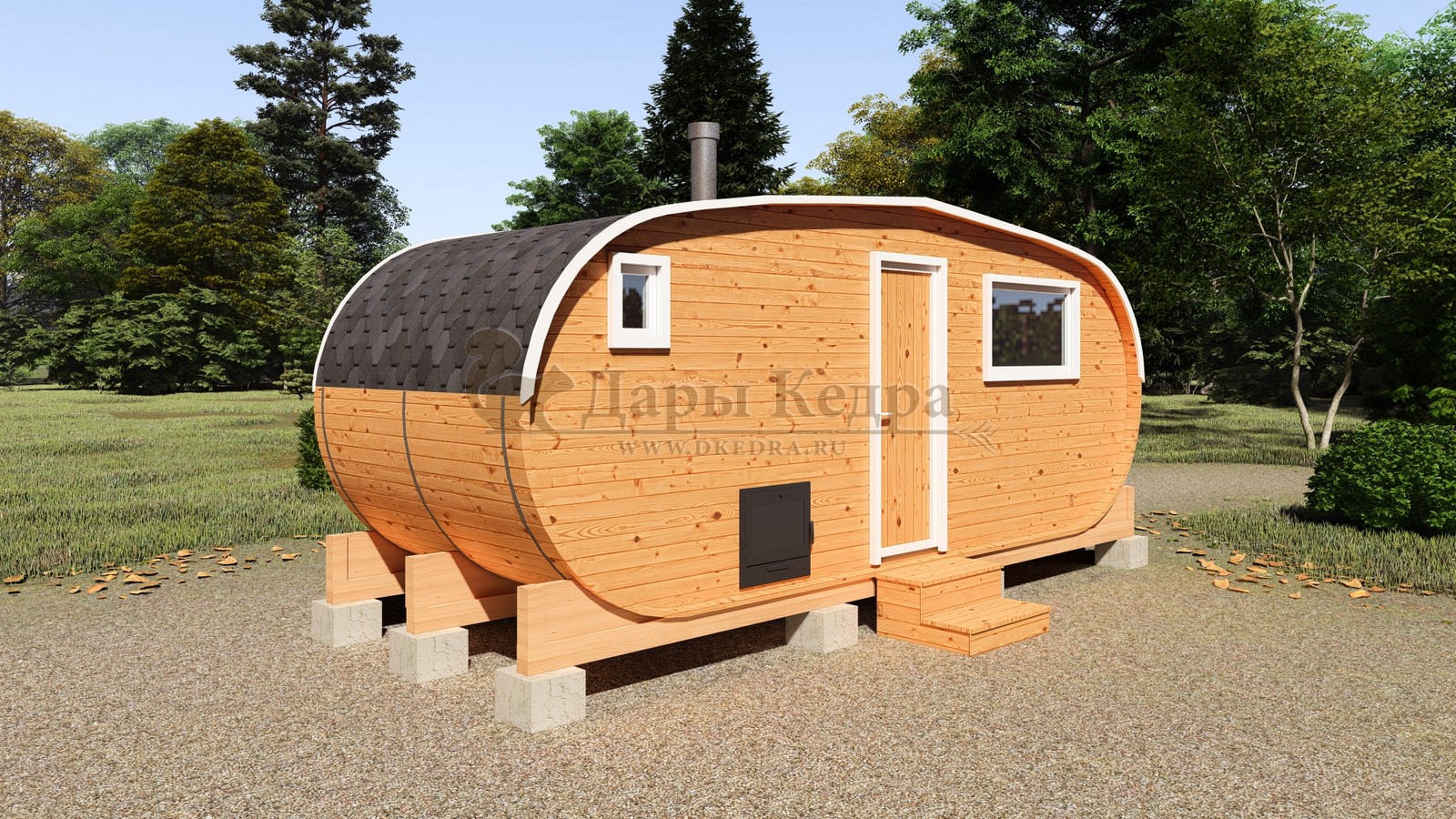 Каждая баня-бочка поставляется в полной комплектации "под ключ", включая печь, дымоход, электрику, бак для воды и мягкую кровлю. Благодаря мобильности конструкции, установка не требует капитального фундамента — достаточно ровной площадки или бетонных блоков.