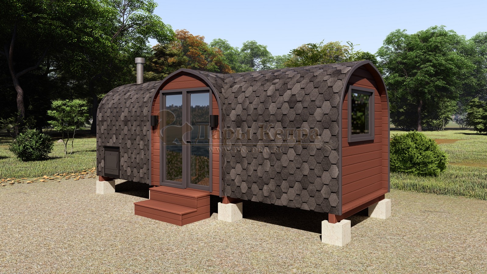 - Простор и функциональность: внутри располагается полноценная парилка, комната отдыха и моечное отделение. По желанию можно добавить душевую кабину, баки для воды и печь.