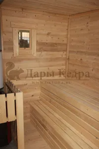 Древесина кедра насыщена эфирными маслами и фитонцидами, которые активируются при воздействии температур. Таким образом, парение в каркаско-щитовых банях из кедра становится еще полезнее.