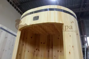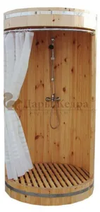 Душевая кабина круглая (овальная) открытого типа, лёгкая и изящная, впишется в любой интерьер и будет хорошо смотреться, как на улице так и в помещении. Круглая душевая кабина из кедра придаст презентабельный вид вашей ванной комнате или спа-салону.