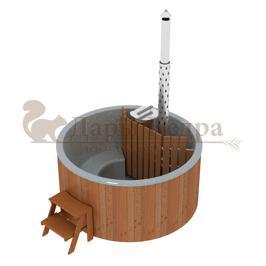 Фурако круглая из кедра с литой термопластиковой вставкой с внешней печью
