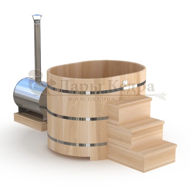 • Финская овальная композитная купель с подогревом (с печкой) «НОТА 79 с печью 25 квт» Это уличная подогреваемая купель с овальной внутренней чашей, которая изготовлена из современного прочного и термоустойчивого материала (композита). Форма чаши обеспечивает комфортную посадку во время принятия процедур. Для удобства пользования купель оборудована приставной лестницей. Подогрев воды осуществляется внешней печью с дымоходом. Композитная вставка придает купели красивый внешний вид, продлевает срок службы и облегчает уход за изделием. Парение на свежем воздухе – это отличный способ укрепить здоровье и поддержать организм в тонусе.