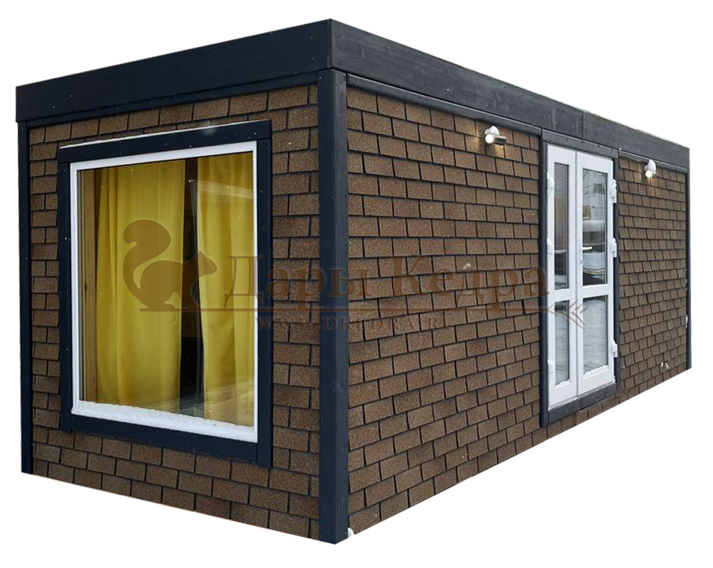 Это утепленный домик прямоугольной формы с панорамным окном и двумя помещениями: жилой комнатой и санузлом с душевой зоной. Может быть изготовлен по готовым стандартам или вашим индивидуальным размерам. Современные материалы, используемые при проектировании, отличаются экологичностью и прочностью.