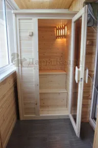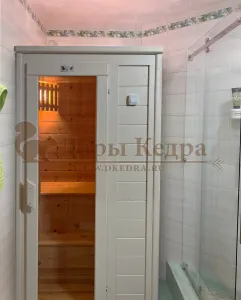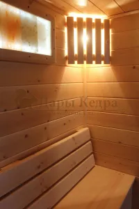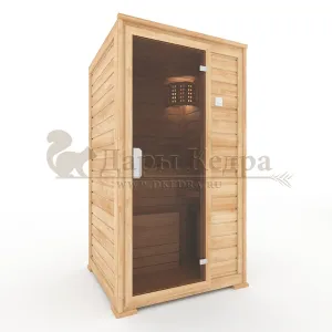 Это специально оборудованная готовая деревянная кабина для сухого и влажного парения. Электропечь нагревает пространство внутри и позволяет сбрызгивать камни водой, слегка увлажняя воздух. Такая процедура позволяет избежать перегрева. Сауна обшита снаружи и внутри кедровой вагонкой и имеет теплоизоляционный слой. Финская сауна с электропечью подойдет, как для домашнего использования, так и для коммерции. Доставляется в разборном виде щитами, собирается по инструкции с помощью шуруповёрта.