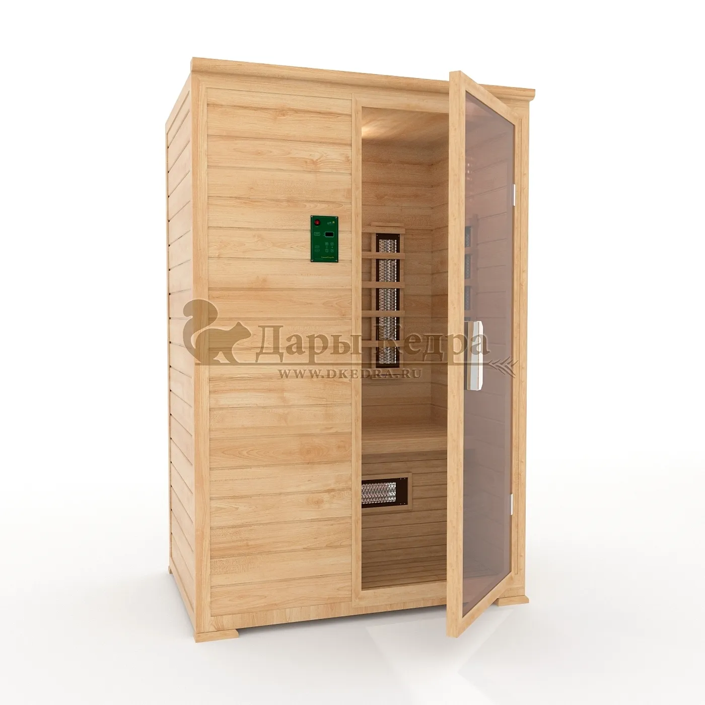 Двухместная инфракрасная сауна кабина из кедра и липы с керамическими излучателями Это специально оборудованная кабина из липы для прогрева тела человека сухим теплом. Воздух в таких парных не нагревается. Инфракрасные лучи воздействуют на тело, равномерно прогревая мышцы, суставы и органы. Керамические излучатели похожи на лампы, имеют высокую температуру нагрева, поэтому защищены противоожоговыми решетками. Тело человека в таких саунах нагревается интенсивнее. Работает кабина за счет электричества. Двухместная инфракрасная сауна с керамическими излучателями подойдет как для домашнего использования, так и для коммерции. Обращаем Ваше внимание, что в стандартную комплектацию входит трапик для ног, но вы можете его заменить на цельный пол совершенно бесплатно!