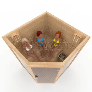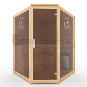 Трехместная угловая финская сауна кабина из кедра с электрокаменкой